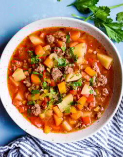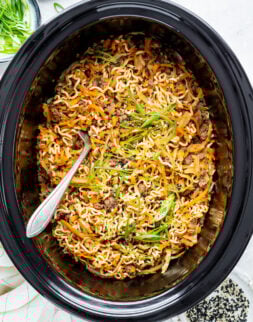 Start with my top-rated slow cooker ramen with ground beef, hamburger soup, and effortless crockpot lasagna.